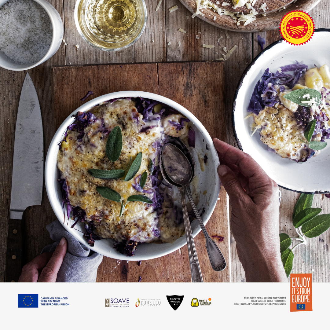 • Cospargete con una generosa quantità di formaggio Monte Veronese DOP grattugiato.